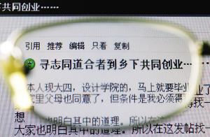 “但會有愿意去鄉(xiāng)下的女孩么?”“OXY-001”在BBS上發(fā)帖《尋志同道合者到下鄉(xiāng)共同創(chuàng)業(yè)》。“OXY-001”在帖子里說:“你要是夢想著找一帥哥就別來了,你要想找一錢包就別見了!你要真是一仙女我也接不住,沒期待您長得跟畫報封面一樣,能做賢妻良兒媳,外表時尚,內(nèi)心保守,身心都健康的一般人就行,要是多少還有點婉約那就更靠譜了!”