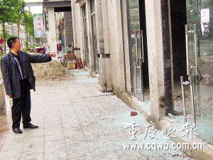 昨日下午,記者在現場看到,A1-14、15號門面各有一扇鋼化玻璃門受損,16號門面有兩扇玻璃門被毀,而14號門面上的二樓房間,也有一塊玻璃破碎。