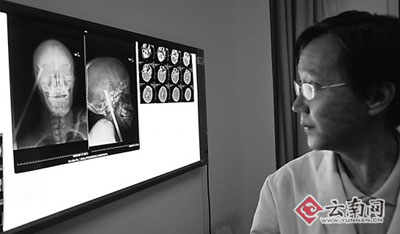 記者從院方了解到,小賀是頭外傷右肘部貫通傷,從X光片上可以看到,約長為8厘米的鋼筋刺進頭顱,目前有生命危險。由于不能確定頭顱內血管受損的情況,院方不敢輕易取出鋼筋,只有先請消防人員分別將刺進手臂和頭顱部分的鋼筋截斷,進行止血等分別處理、規避各種風險后,制定出最佳的方案才能實施手術。(記者 何謹)(春城晚報)