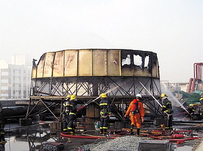 起火的黃河時(shí)裝城位于虎門1平方公里服裝商圈內(nèi),是虎門很旺的購物地點(diǎn),1到4樓為中小型服裝商鋪,5樓為超市及飲食店。起火點(diǎn)是9樓頂上的一個(gè)冷卻塔。記者在現(xiàn)場看到,冷卻塔中央有小火,只是起初濃煙很大,彌漫空中。據(jù)悉,該冷卻塔已經(jīng)廢棄,排除自燃的可能性。20多分鐘后,火被撲滅,沒有人員傷亡。記者昨日下午5時(shí)40分離開現(xiàn)場的時(shí)候,整個(gè)時(shí)裝城仍處于封閉狀態(tài)。