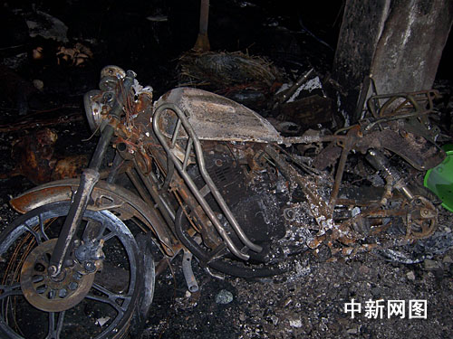 在一樓火災事故現場,記者看到房屋已被燒得漆黑一片,中間部位堆放的一些輔料和半成品全部過火,靠墻的一邊有一輛被燒毀的摩托車。輔料被燒后產生的大量濃煙將墻壁熏得灰黑。