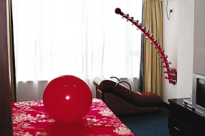 五十多平方米的房間內(nèi),燈光溫馨曖昧,一張大紅床格外引人注目,情趣用品一應(yīng)俱全。記者看到,跟一般的酒店里陳設(shè)不同的是,房間里有很多奇形怪狀的家具。據(jù)周某介紹,除了床是電動(dòng)床以外,還有歡樂(lè)椅、情趣球、S形沙發(fā)等。“這些可不是體操運(yùn)動(dòng)器材,而是情趣酒店的特別設(shè)施,專(zhuān)門(mén)供夫妻情侶性生活用的。”