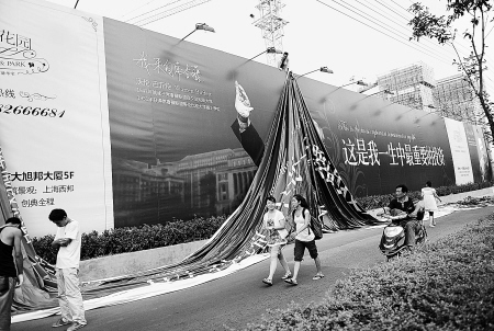 昨晚7時許,記者再次來到該樓盤外,看到很多工人正在做準備,他們要將一幅新制作的廣告覆蓋在上面。新廣告上傳達的內容和相關字樣沒什么變化,只是將名人頭像換成了“股神說”“科學家說”等字樣。幾位工作人員說,聽說這幾幅廣告涉嫌侵權,公司才緊急將其換掉的。 (記者郭欣 實習生胡歲歲)