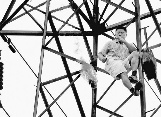 他想要演一場秀,就像不少人做的那樣,爬上鐵塔或者高樓,以一種極端的方式引起人們的關注。他這么做的目的是為了討要人家欠的工程款。