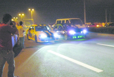在前方的十字路口,警燈閃爍,警察通過擴音器向車主喊道:“今天的活動取消,請各位車主自行離去,注意安全!睋F場警官介紹,晚上9點半左右,以前幾乎沒有車走的道路突然陸續來了幾百輛,大面鎮派出所的天眼監視到這個情況后,立即向指揮部匯報,龍泉警方派出一名副局長帶隊趕來處理。一名POLO車主說,他們是通過車友會QQ群通知趕來這里,說是要舉行0到400米的提速比賽,他也不是想來比賽,也就是來看個熱鬧。現在有警察出來干預,他們也準備撤了,幾個車友約著去吃牛肉面。