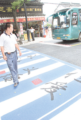 一些市民也認為,“文化斑馬線”上的書法和印章完全是多余的,“新型斑馬線太花哨,要是司機只顧低頭看字,出了事故,誰來承擔責任?”他們認為,畢竟斑馬線首先要承載的是安全,而非文化,在斑馬線兩旁或者路牌上體現書法作品和文化內涵也許更好。(本報記者 蔣德)