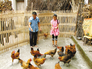 曾得益種莊稼、打花鼓、加上農村低保,一年收入不到3000元。為補貼家用,父女倆還養了16只雞。養雞后,璐璐天天到堰塘摸貝殼喂雞,盼著它們快些長大。
