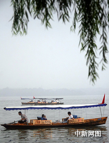 “坐船、坐船,來杭州不坐船可是要遺憾的!”盡管杭州陰雨綿綿,但在西湖斷橋碼頭還是聚集了一大批興致勃勃的中外游客,丁慧軍全然不顧已經濕透的船工服,仍是賣力地吆喝著。熱情的召喚聲很快聚攏了一批游客,面對他們的討價還價,丁慧軍一指手劃船說:“一個小時80元,明碼標價,童叟無欺。”