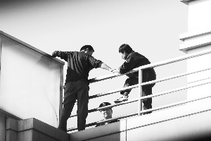 昨日下午3點,經過近29個小時的僵持,該男子在警方的勸解下,緩緩邁過護欄,回到護欄內側,隨后該男子被警方帶到該大廈某房間內,下午3點40分左右,在警方的陪同下離去。(記者巴士廣)