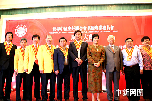世界中國(guó)烹飪聯(lián)合會(huì)名廚專業(yè)委員會(huì)今年一月經(jīng)國(guó)家批準(zhǔn),正式注冊(cè),名稱確定為“世界中國(guó)烹飪聯(lián)合會(huì)名廚專業(yè)委員會(huì)(Famous Chef Committee of the World Association of Chinese Cuisine)”。簡(jiǎn)稱“世烹聯(lián)名廚委”,作為世烹聯(lián)下設(shè)的二級(jí)機(jī)構(gòu)同樣將辦公場(chǎng)所設(shè)在北京。旨在為加強(qiáng)國(guó)際中餐廚師的交流,提高中餐烹飪技藝水平及中餐廚師的國(guó)際地位。圖為楊柳會(huì)長(zhǎng)與首屆委員們合影。