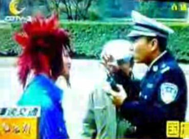 某論壇出現一段題為“譚警官看不慣大刀闊斧洗刷‘非主流’”的視頻,視頻中一名90后男生打扮很是扎眼:染著紅色頭發,呈爆炸狀,并將他的左臉全部遮擋。因為他乘坐摩托車沒戴安全頭盔,所以譚喬將其攔下,對其進行了教育,言語犀利、精辟,一時間在網上熱傳。昨(29)日,譚喬接受記者采訪時笑著說:“我一直以為那個人是女的!”執勤這么久以來,還是第一次遇到這樣的打扮,著實把他給“雷”了一把。