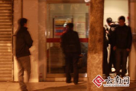發(fā)生案件的中信銀行自助銀行位于昆明市鼓樓醫(yī)院門口。記者趕至現(xiàn)場時。事發(fā)現(xiàn)場已被警方封鎖,警察和特警正密切監(jiān)視著自助銀行內(nèi)的舉動。警方還對昆明市北京路與穿金路交叉口(圓通大橋路口)與北京路龍騰酒店一段道路實施了雙向交通管制。不過,在交警的疏導(dǎo)下,交通仍較順暢,南北雙向交通均未出現(xiàn)堵車現(xiàn)象。現(xiàn)場聚集了不少圍觀人員,執(zhí)勤民警不停地勸說大家盡快離開,不要圍觀。
