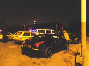 就在記者采訪的時候,4輛豪車又回到了奧體北門。大家停好車,紛紛下車抽煙聊天。記者急忙追了上去,只見在奧體北大門西側(cè)路面上,一字排開著4輛顏色不一的豪華跑車,車尾處留下了一道道長長的剎車痕跡,足見停車前的速度很快。4輛顏色不一的豪華跑車中,有三輛車子上沒有上牌照,有一輛車子車牌擋著。車上下來的都是年輕人,車手都是男的,每人身邊跟著一位大美女。車主們說這些跑車都是自己私車,個個都自稱是富二代,他們每個人所開的跑車都在80萬至100多萬之間,還不是最好的車輛。見此情況,記者立刻報了警,并拿出相機拍照采訪。