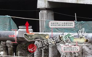 鐘福平說(shuō),聽(tīng)到工地沖進(jìn)搶包嫌犯,他也慌忙來(lái)到污水管處。交巡警和幾名市民已在現(xiàn)場(chǎng)。鐘福平告訴交巡警,這是解放碑商圈的排污管道,管道直徑0.8米,只容得下一個(gè)人爬行。