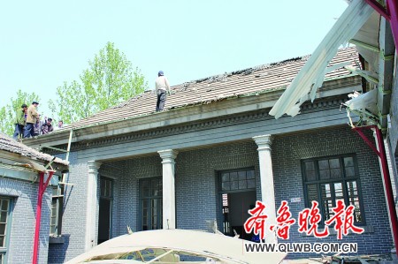 4月30日上午,濟南經四路343號,房子里的濟南市民體質監測中心留守工作人員和拆遷人員發生言語沖突。濟南文化界人士表示,這座獨特的中西合璧四合院應予保留,他們已經將此大院列入了省級文物保護單位申報名單,沒想到就在這個當口,竟然就要被拆了。本報記者 董從哲