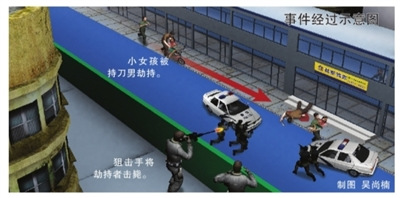 昨日11時20分許,一外地男子在宣武區菜園街綁架一名5歲女童,要求警方幫他聯系網戀女友。他在談判過程中情緒激動,劃傷女童的脖子。12時11分許,狙擊手將該男子一槍擊斃,受傷女童被送往宣武醫院縫了9針,目前已被其父接回家。北京市公安局昨日下午召開發布會,現場處置組榮獲集體三等功,擊斃疑犯的特警獲個人二等功。公安局副局長劉紹武表示,“決不能在北京發生任何危害少年兒童的事件。”