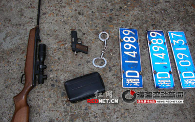 5月11日中午11時(shí)許,專門針對(duì)從銀行取款后的人實(shí)施搶劫的兩名冒牌警察,被衡陽(yáng)市公安局南岳分局民警抓獲歸案。犯罪嫌疑人作案用的槍支、手銬、小車悉數(shù)被警方繳獲。