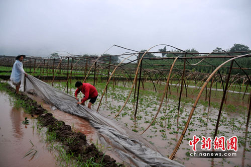 中新網重慶6月23日電(盧宗艷 銀雪)“早上還到縣城送貨,路上就接到工人電話說大棚被沖毀了,來回不到2個小時。”23日,重慶綦江縣永新鎮石塔村村民何家全看著自己承包的60余畝大棚蔬菜基地瞬間變成一片汪洋大海,心疼地說不出話來。