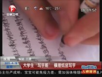 大學生“寫字哥” 橫擺紙豎寫字