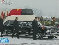 金正恩手扶金正日靈柩駛過朝鮮儀仗隊