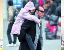 穿黑風衣戴黑墨鏡男子背八旬老母跨省探親