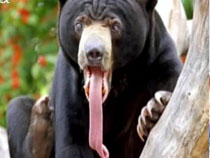 逗趣狗熊打哈欠 “長舌”造型憨態可掬