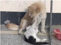 貓狗一家親 貓認狗做“奶媽”