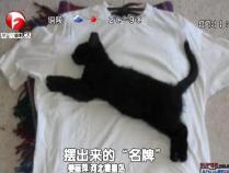 黑貓爬上白襯衫 擺出趣味“名牌”