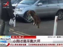 小狗平衡感超強 后腿站在鐵鏈上身子擺動