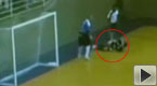 實拍:一室內足球隊員滑倒被