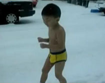 實拍:四歲“裸跑弟”雪中“裸跑”