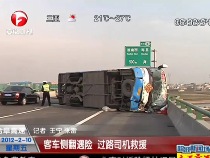 客車高速側翻遇險 過路司機齊力救援