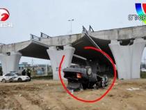 坑爹的高架橋讓轎車(chē)直接翻下橋底