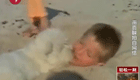 寶寶學走路遭遇“天外飛球”被擊暈