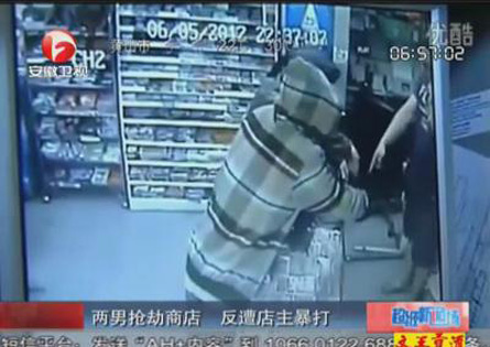 實拍兩男搶劫商店 反遭店主暴打