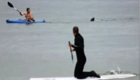 美成群大白鯊現身淺水區緊跟游客