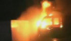 "?"來襲 電線被吹斷起火燒毀路邊汽車