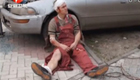 監拍男子泄憤捅車胎被氣浪沖翻