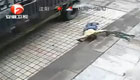 監拍男子泄憤捅車胎被氣浪沖翻