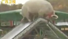 女士頭頂豬屁股幫其“過斜坡”