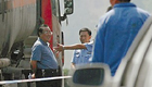 賓館電視為防盜 加上鋼筋和鐵鎖