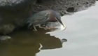 實拍小鳥用面包在水里釣魚