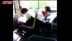 拍客:小學生公交車上忙寫作業(yè)