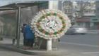 壽衣店公交站臺擺花圈做廣告給司機"添堵"
