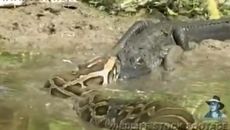 實拍:巨蟒大戰食人鱷相互撕咬 都成精了