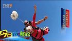 美女主持人直播球賽 被足球砸中腦袋