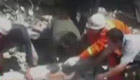 救援人員晃動危橋上通過救傷員