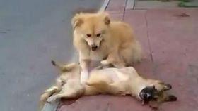 實拍狗狗欲搖醒被撞同伴感人一幕