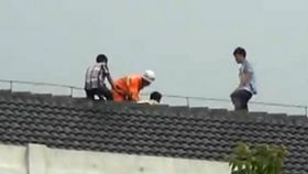 三男生爬樓頂躲避父母責罰