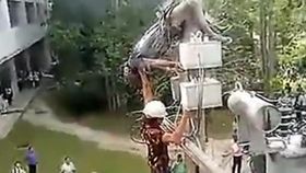 男子遭高壓電擊懸空倒掛